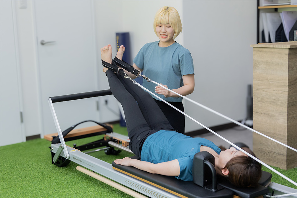ピラティスマシンは、最もポピュラーな「リフォーマー」を導入。トレーナーが丁寧にサポートしてくれるので、マシンピラティスが初めての方でも安心して取り組めます。